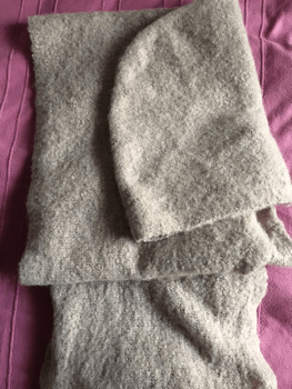 Lovely soft pale pink hooded-style neck scarf, for the winter's cold drafts. Has not been used at all, only the tags removed. The third picture shows the true color.