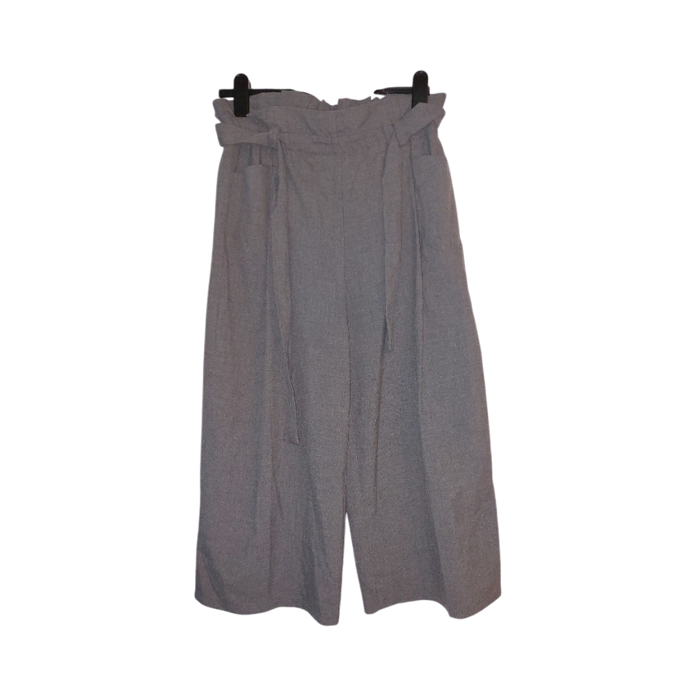 High-waisted wide-leg culottes with tie belt, smart casual. Comfortable.