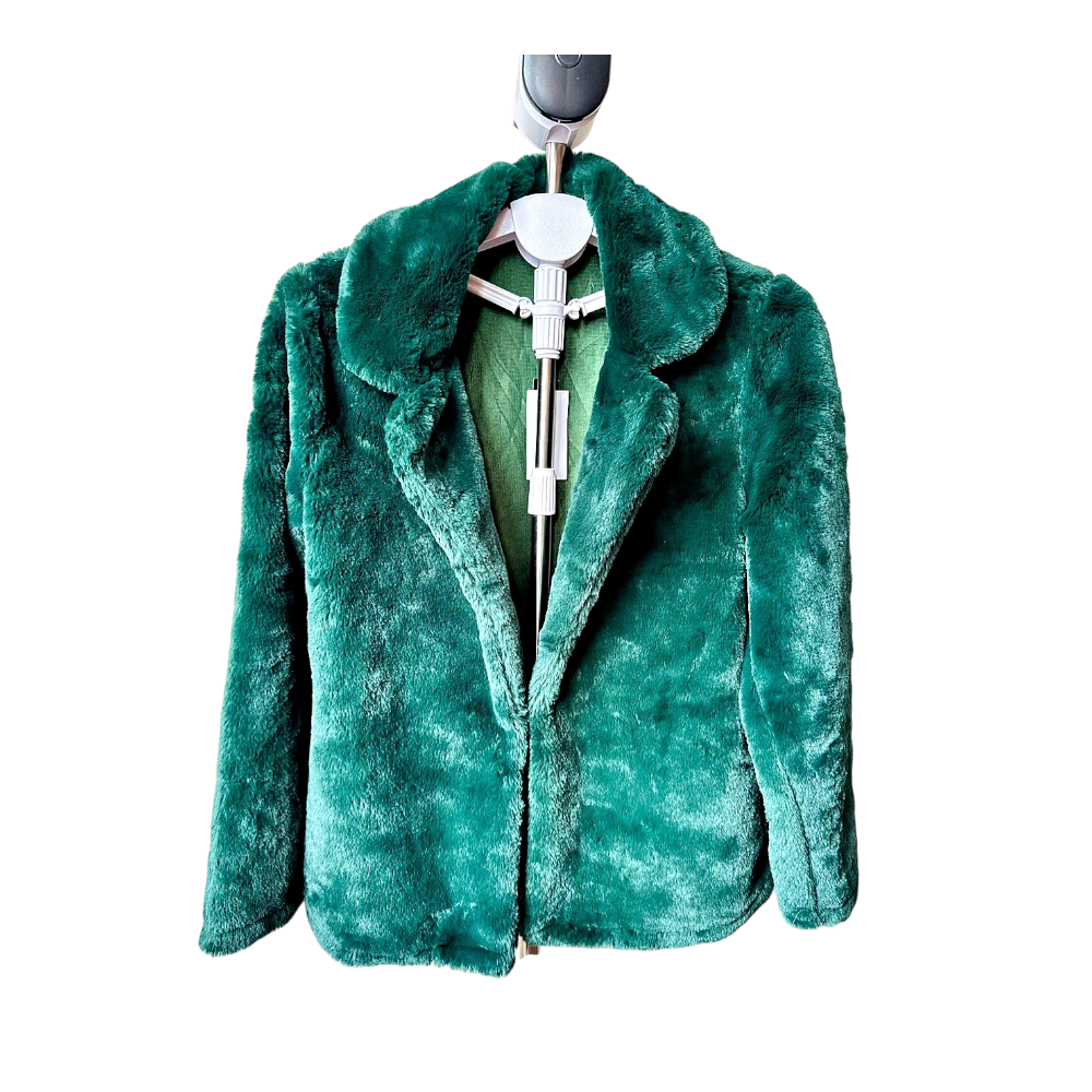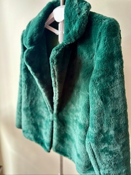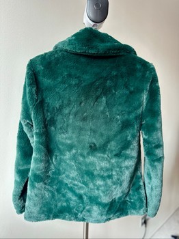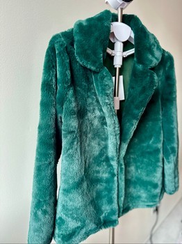 Dark green faux fur jacket with a collar. New with tags. Size M.
