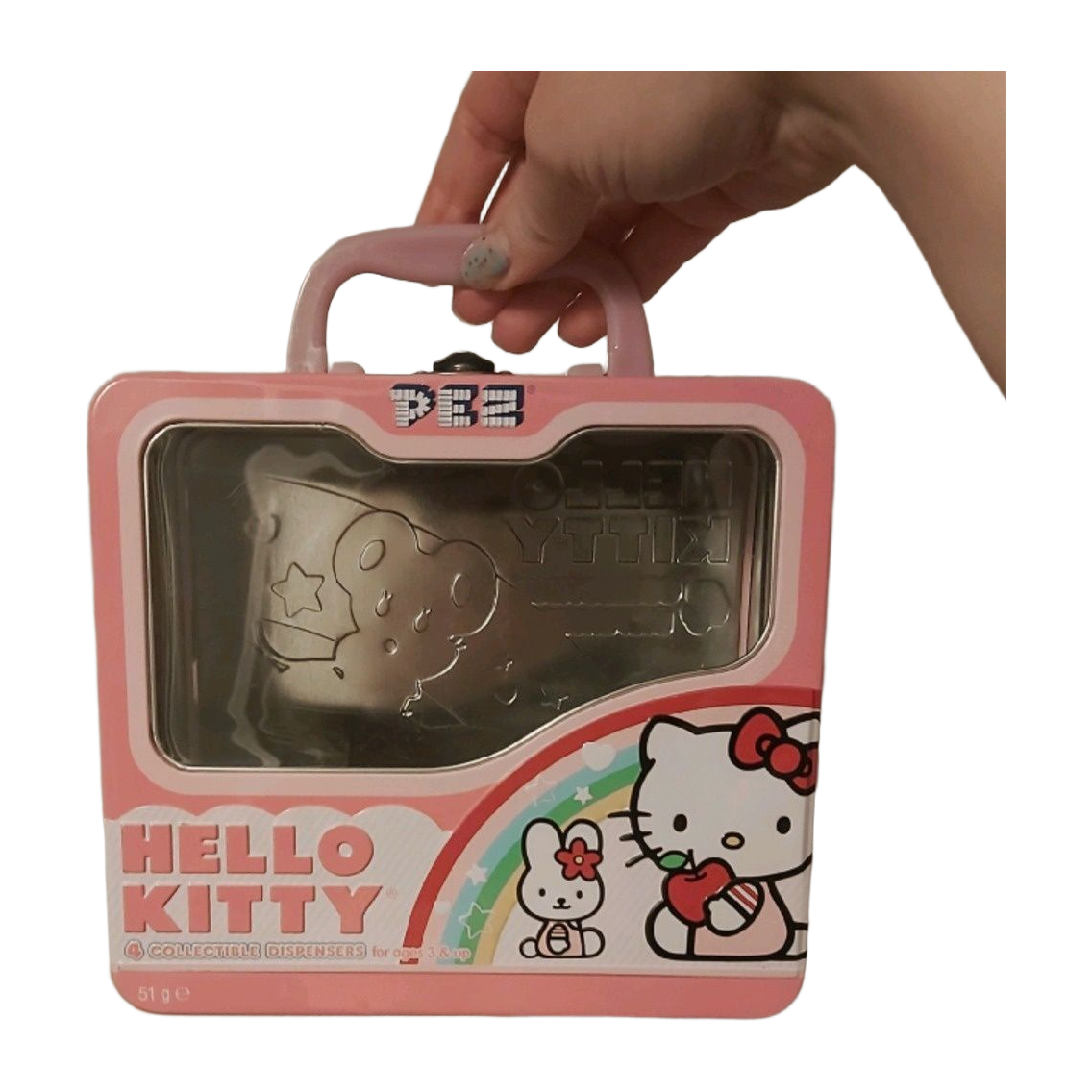 Hello Kitty box that has held Pez candies. Also as a lunchbox. You will also get this as a freebie when purchasing anything. Notify about it by message.