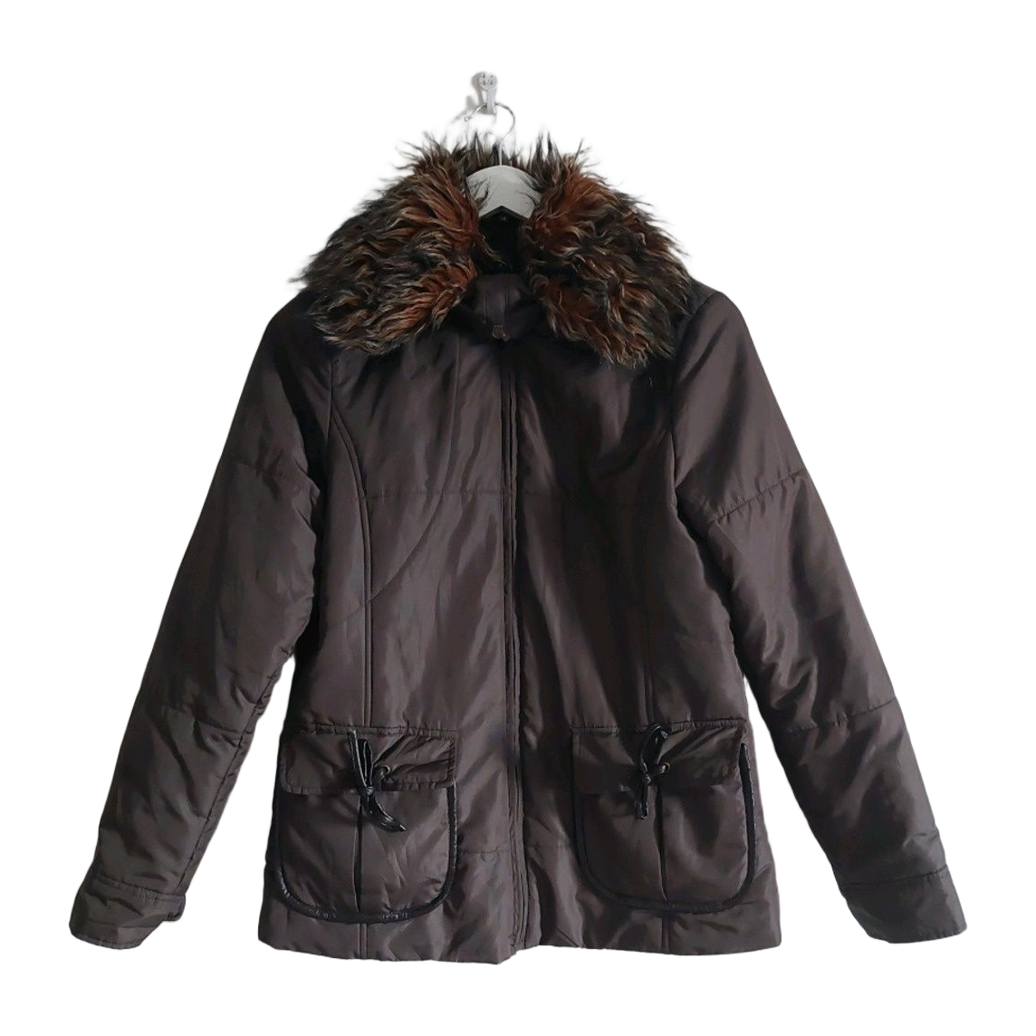 Light padded jacket in neat condition. The fur trim can be removed.