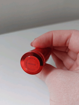Lipstick in shade Androgyny. One layer has been cut off the lipstick.