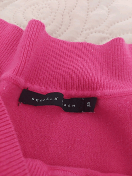 Pink sweater with a wide neckline. Pilling.