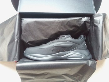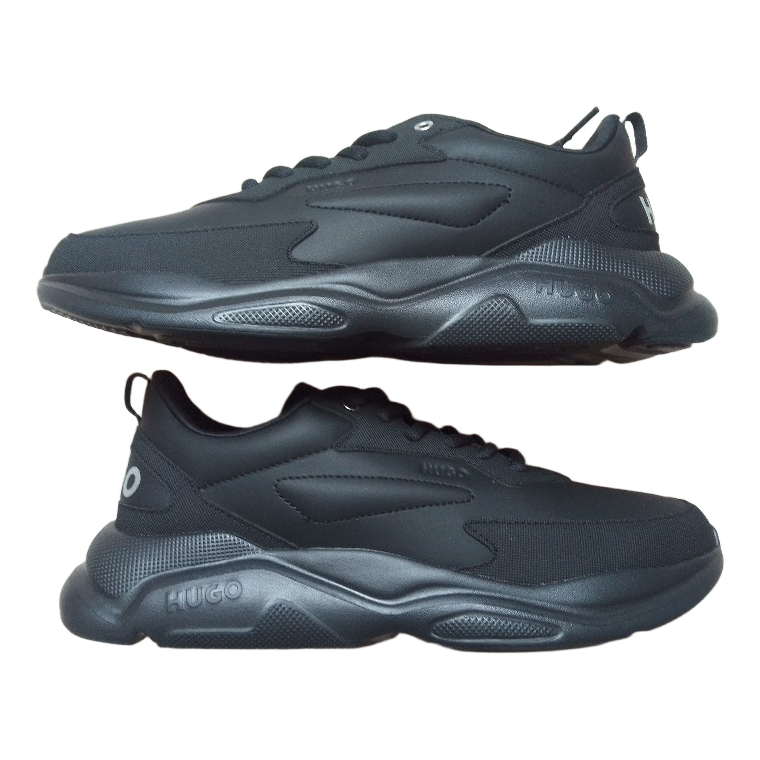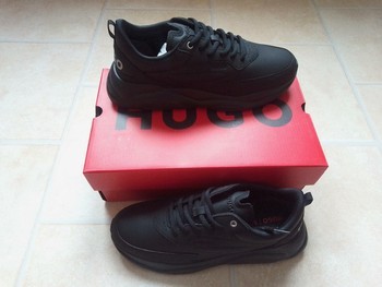 Black Hugo sneakers with a chunky sole and brand logo on the back. New with box.