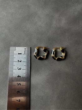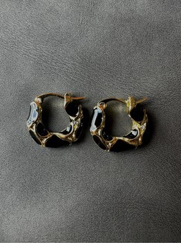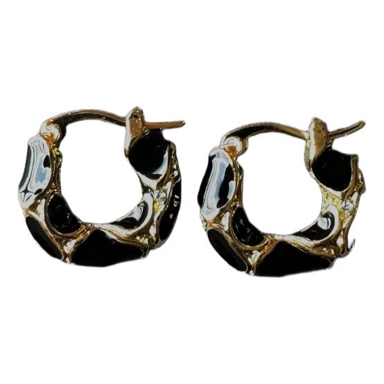 Small hoop earrings with gold-tone finish and black enamel details.