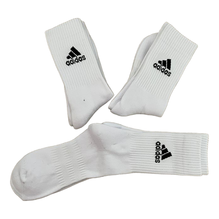 Three pairs of white Adidas socks with black logo detail.36-42ismera