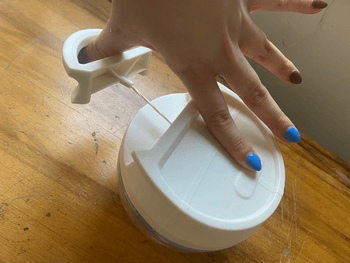 Vegetable chopper from Japan. Pull the tab, and the blades inside the bowl spin. Works great for onions and other vegetables you want finely chopped. Good condition.