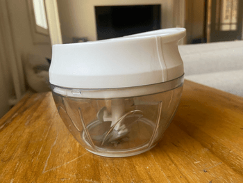 Valkoinen käsikäyttöinen ruokasilppuri