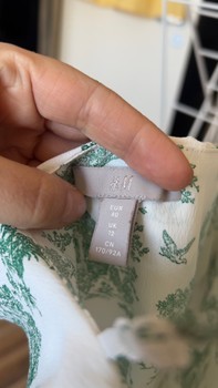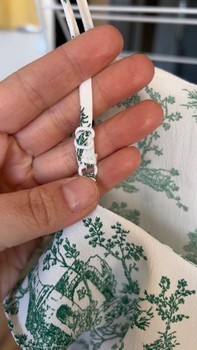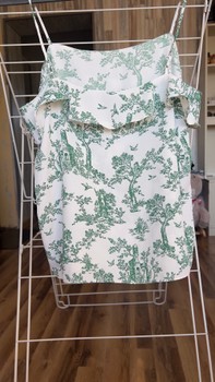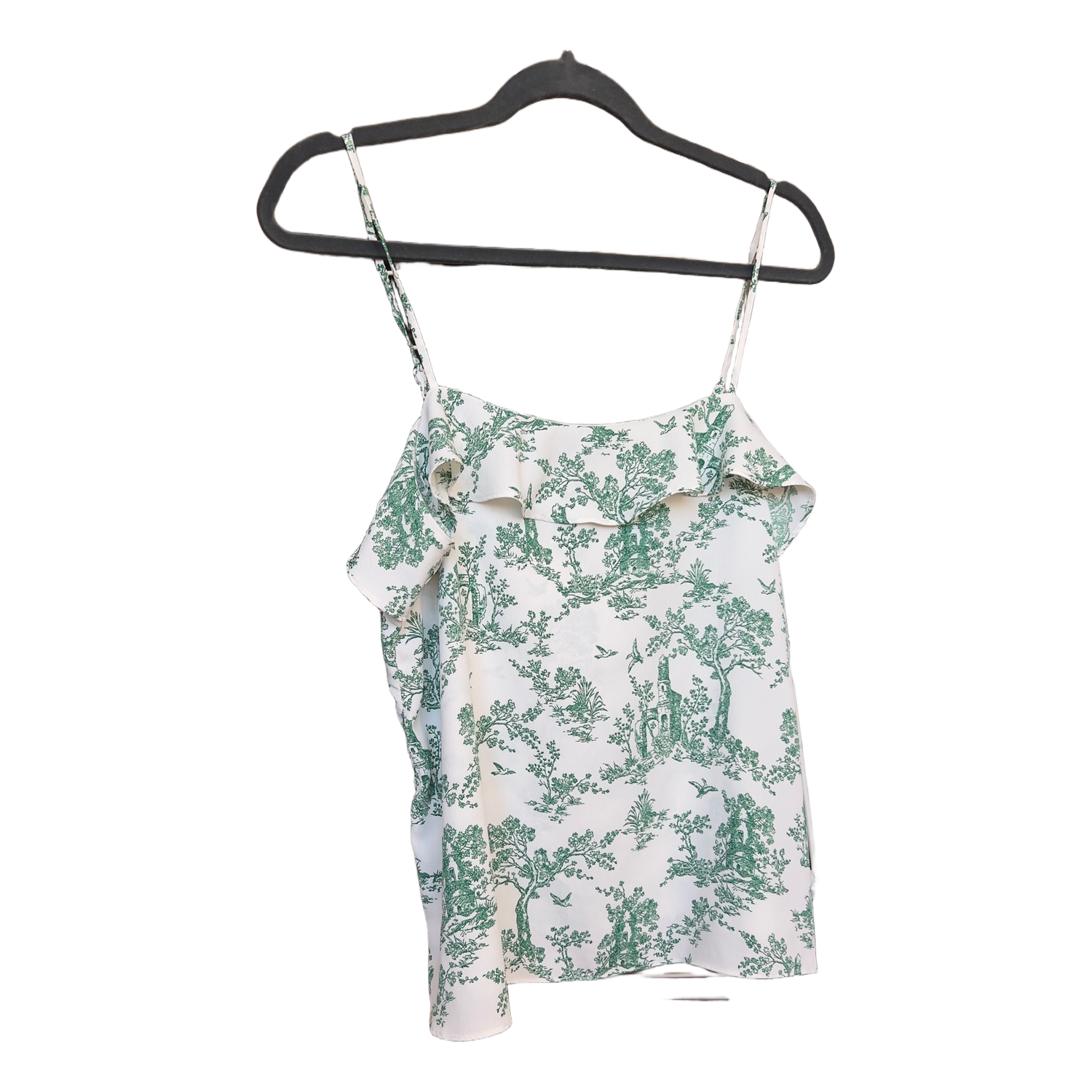 Toile de jouy patterned top with spaghetti straps and a ruffled detail. Size 40, made of polyester.