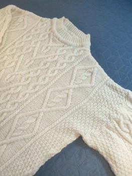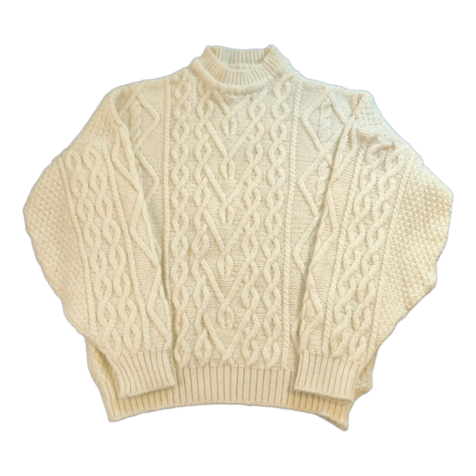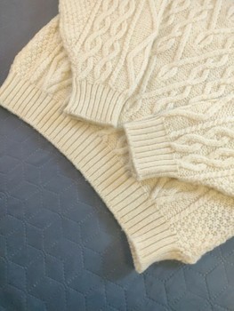 Vintage 100% Wool Cable Knit - Natural White - M/L