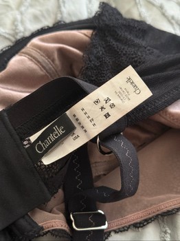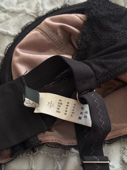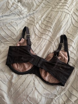 Lace bra in black with beige lining. Underwire design. Size 80H.