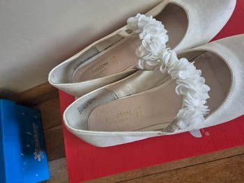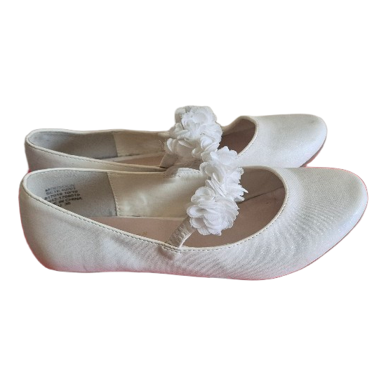 White ballet flats for girls with decorative floral strap. Size 36.