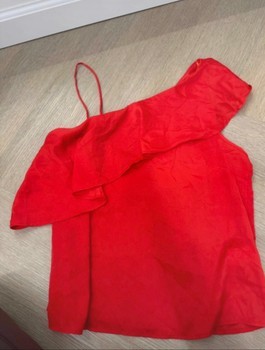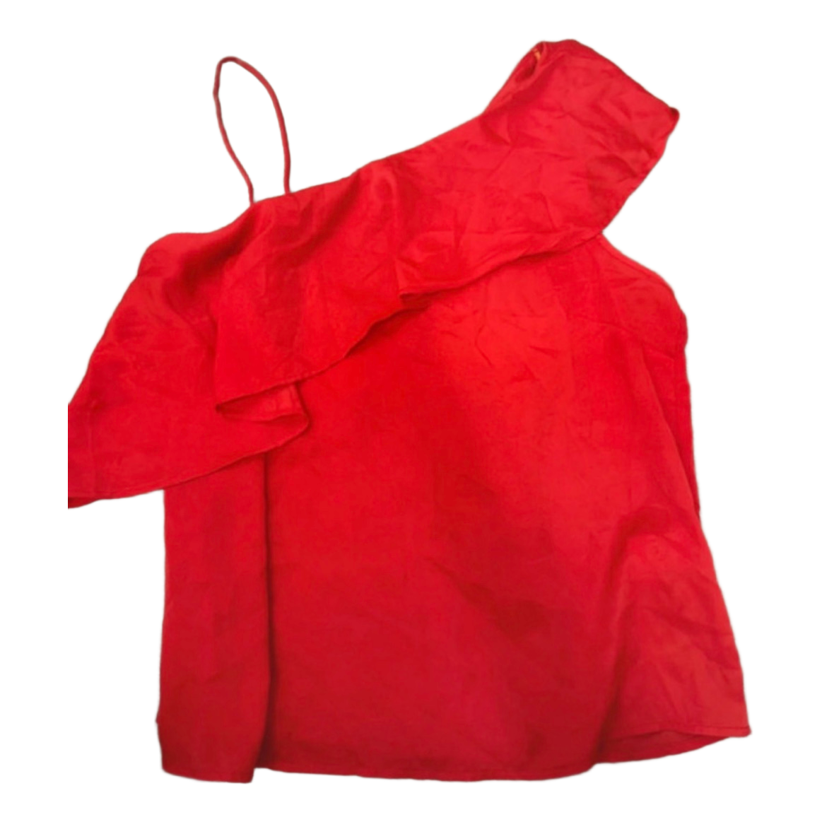 Red one-shoulder top with ruffle detail. Size S.