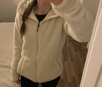 Very warm Everest fleece jacket in size S. Only worn a few times at home, so like new. Color natural white. Slightly longer model, open front pockets. Original price 60€.