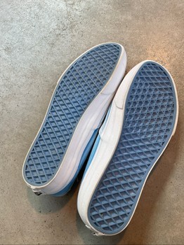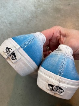 Low-top Vans sneakers with an ombre effect in blue and white. Feature classic rubber waffle soles.