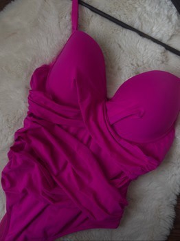Parduodamas akį traukiantis, iton ryškios fuksijų (magenta) spalvos vienos dalies maudymosi kostiumėlis. Šis modelis ne tik atrodo stilingai, bet ir puikiai formuoja figūrą.
