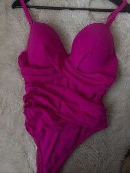 Ryškiai fuksijų spalvos vienos dalies maudymosi kostiumėlis su modeliuojančiu efektu💕