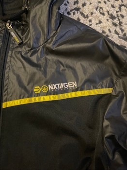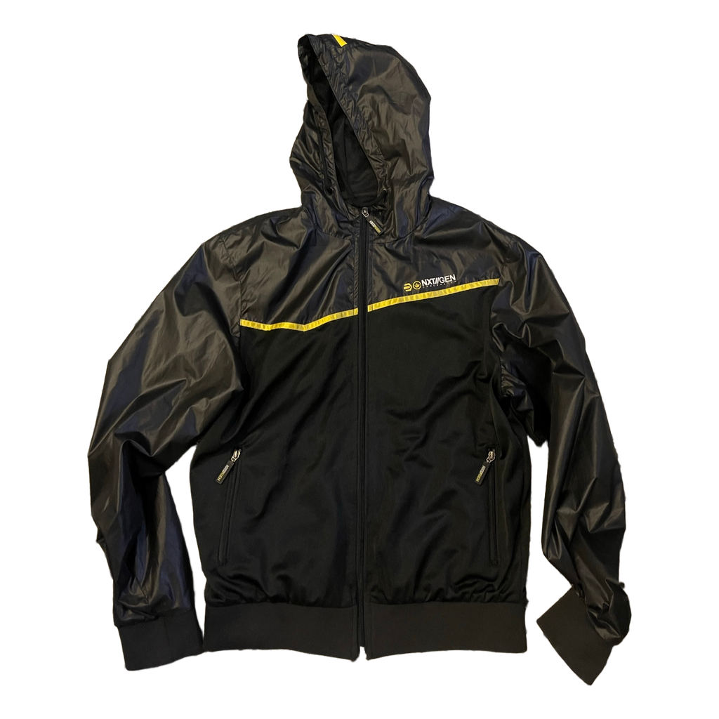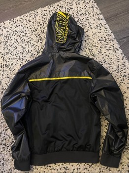 Black hooded Crosshatch jacket with yellow details. Size L.
