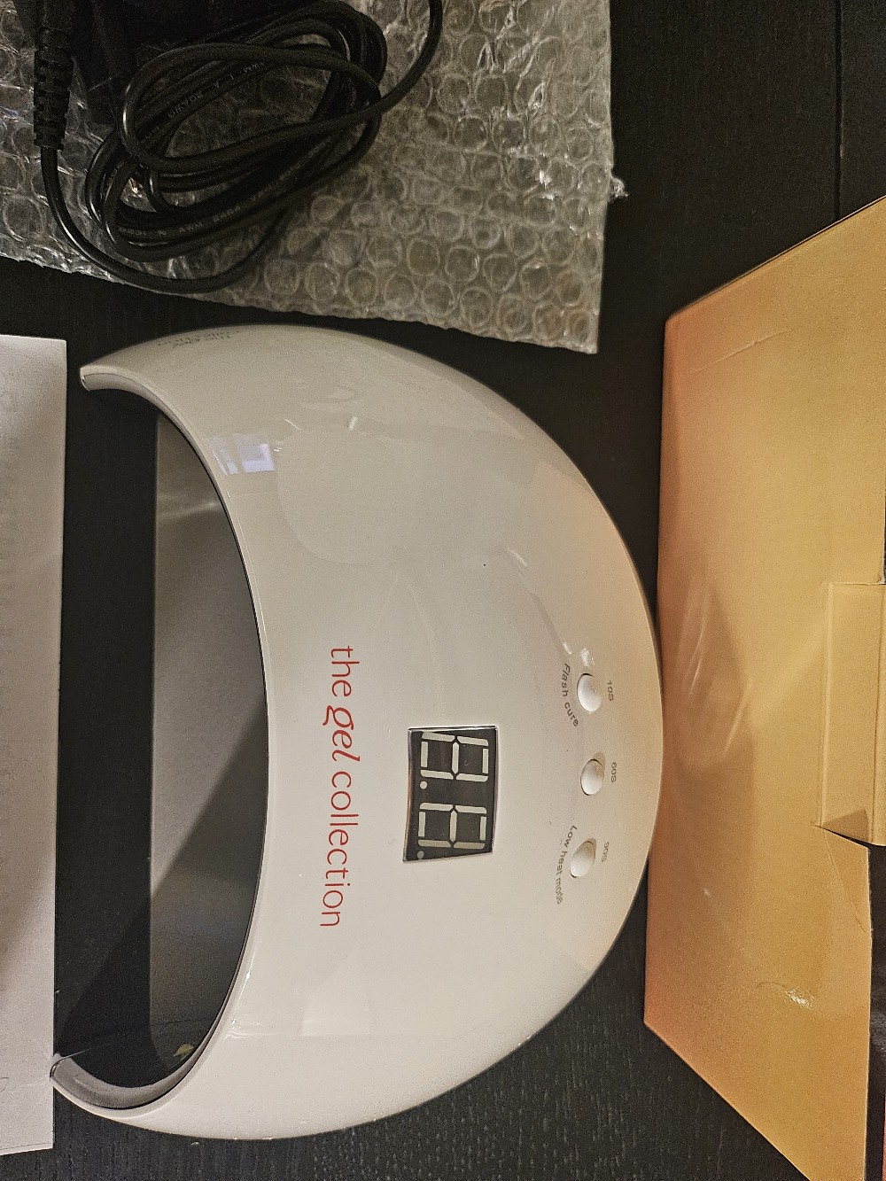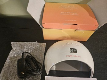 White UV LED lamp for gel nails by The Gel Collection. Includes power adapter and instruction manual in the original box. Used for less than 3 months. In very good condition.