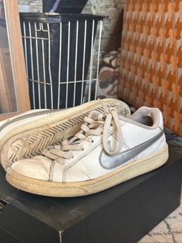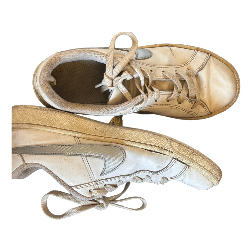 White Nike sneakers with metallic swoosh detailing. Size 38.5.