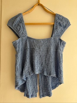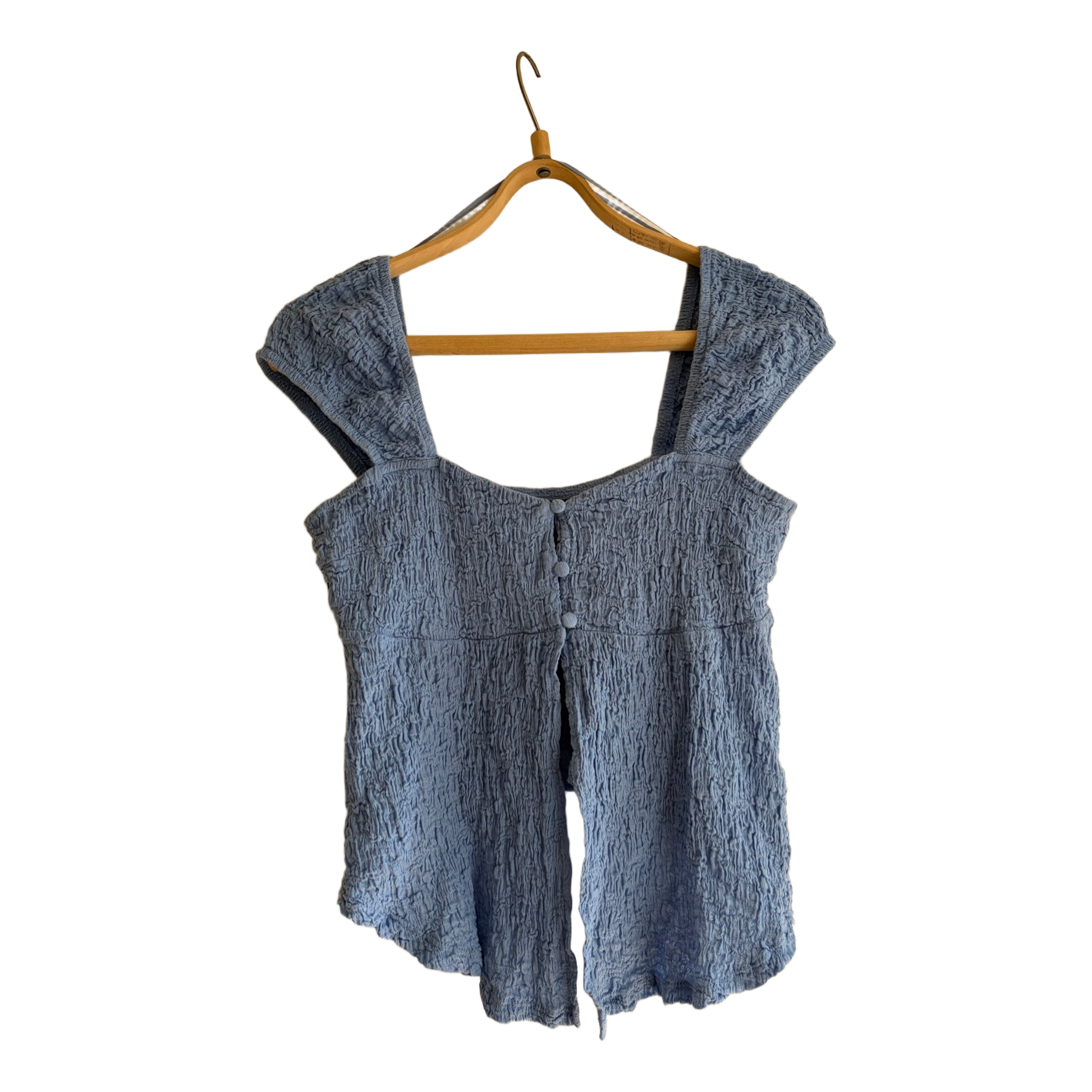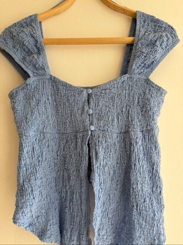 Textured blue top with cap sleeves and button front detail. From Gina Tricot, size M.