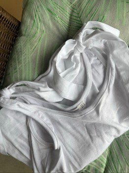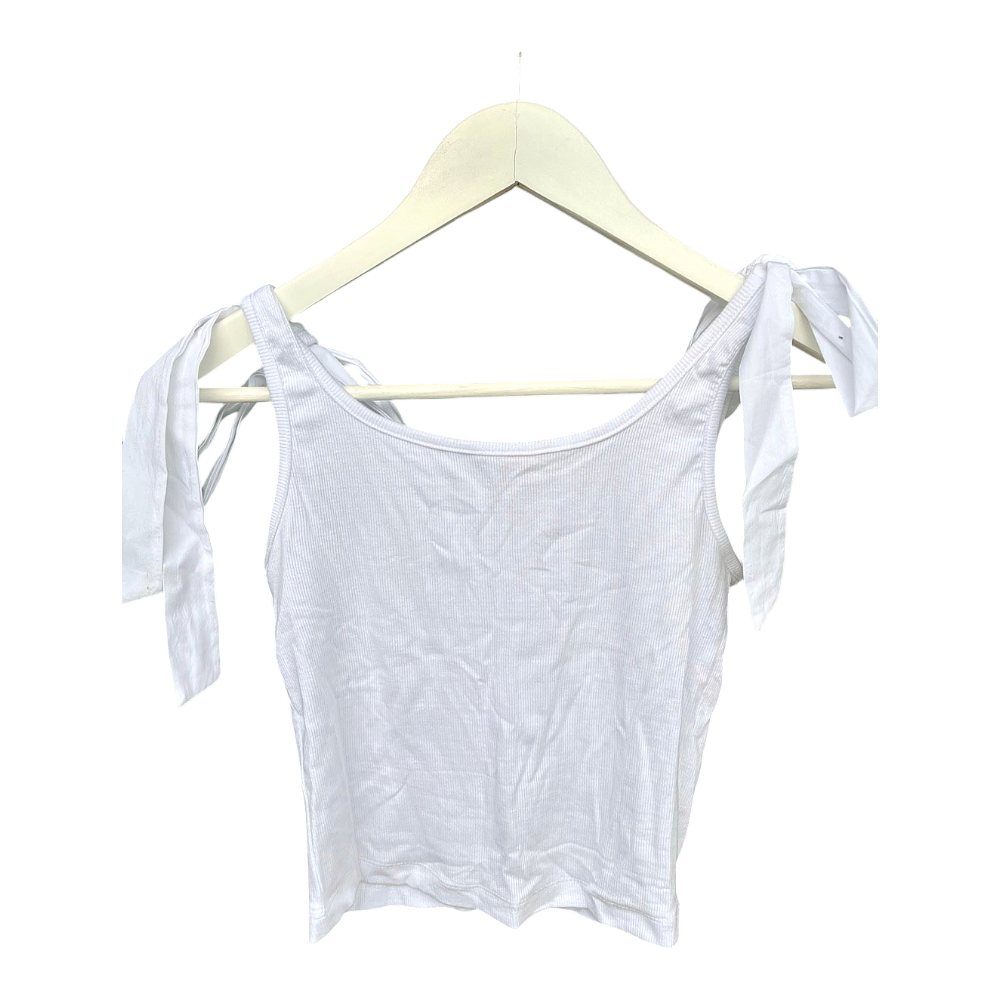 Like-new white top with bow tie straps, fits well XS–M