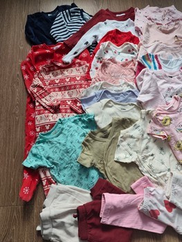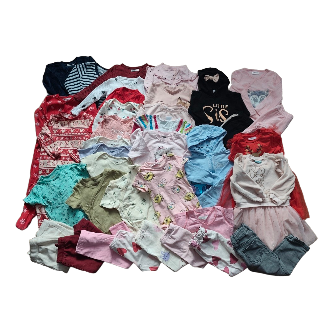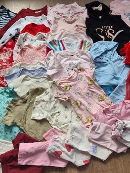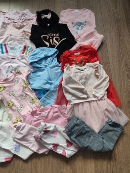 Large clothing set for a girl. Various sweaters, bodysuits, pants and dresses.