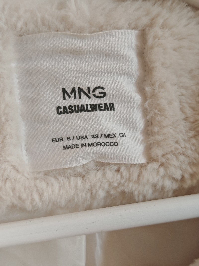 Mango beautiful faux fur coat. Natural white/cream. Size S. Chest circumference approx. 54 cm, shoulder-to-hem approx. 87 cm. Slightly used.