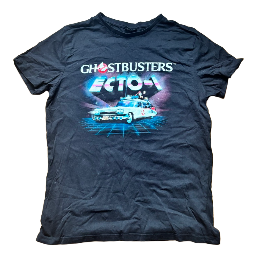 Black t-shirt featuring a Ghostbusters Ecto-1 print on the chest. Size L.