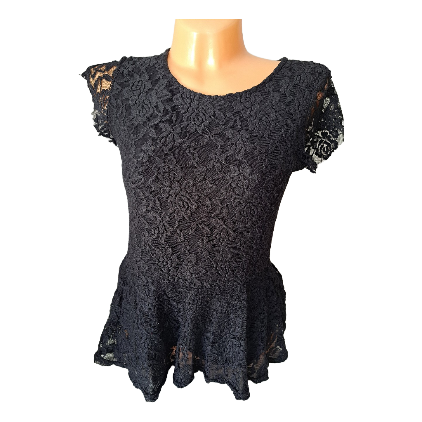 Must pitsist lühikeste varrukatega peplum-pluus.