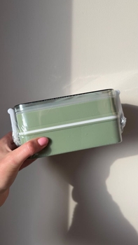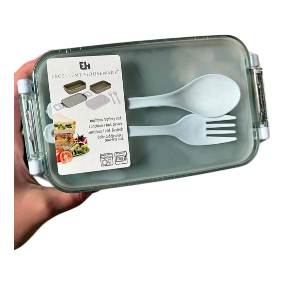 Green lunch box with cutlery