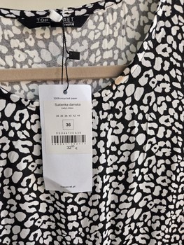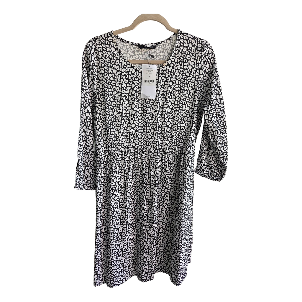 Black and white patterned dress with long sleeves and elasticated cuffs. Made of 100% viscose. New with tags, size 36.