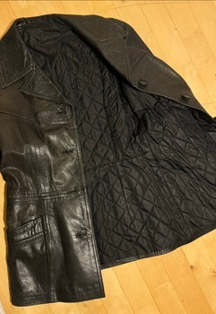 Black genuine Vintage leather jacket, with a quilted lining. Stylish aged patina. Size S.