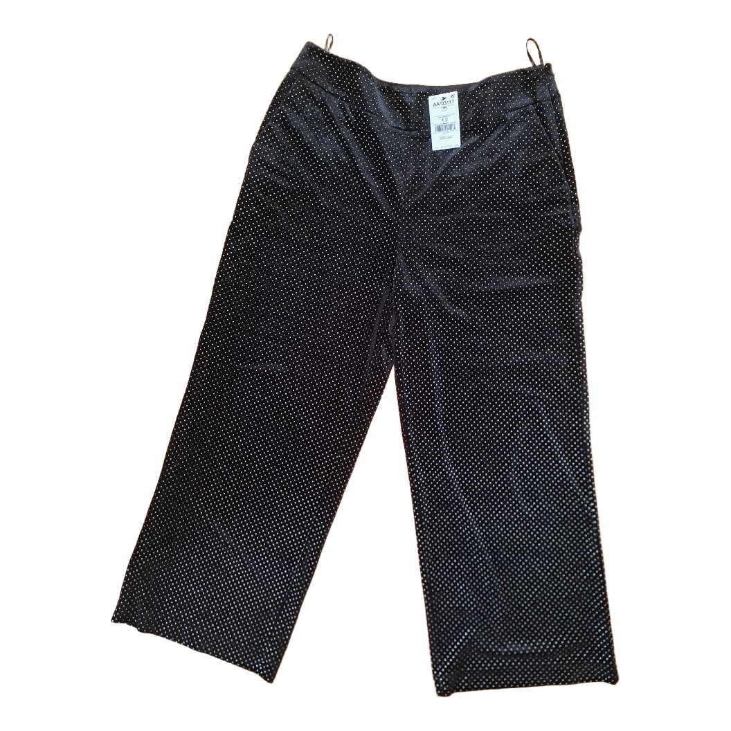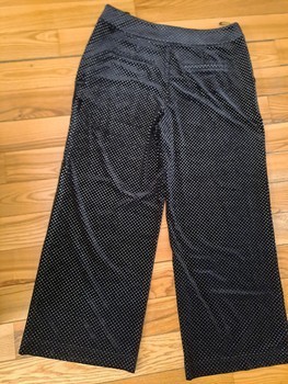 Black wide-leg trousers with white polka dot pattern. Made of polyester blend. Size 46.