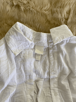 White long top. Can be worn open or tied in front closed with a bow. Also perfect as a cover-up for the beach. Slightly used/in good condition. Size XS but fits well for size S as well. 💛