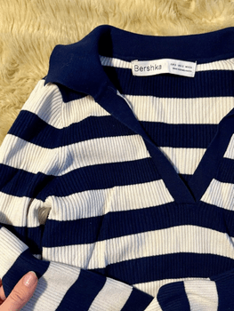 Long-sleeved, blue stripes, size S, used only a couple of times.