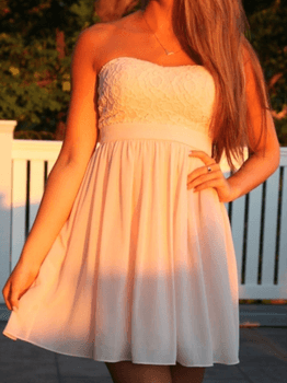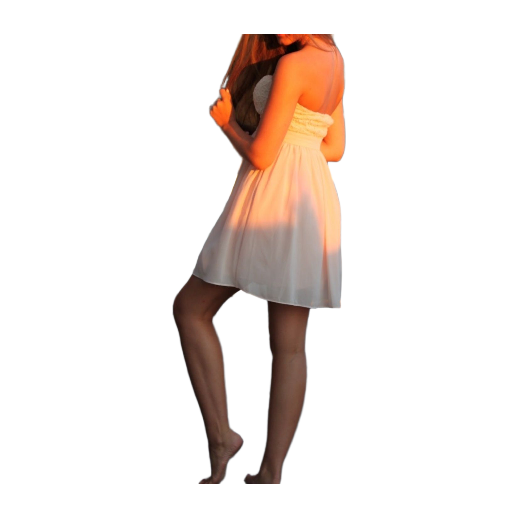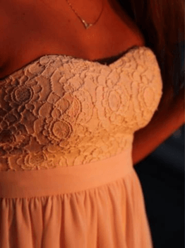 Purchased from the USA Prom Girl store, from the Minuetin collection. Zipper on the side, the skirt has 3 fabrics: underskirt, tulle fabric and outer fabric (chiffon). Strapless, there is an elastic band at the top so it stays on well. Padded cups, so can be worn without a bra. Worn once!