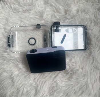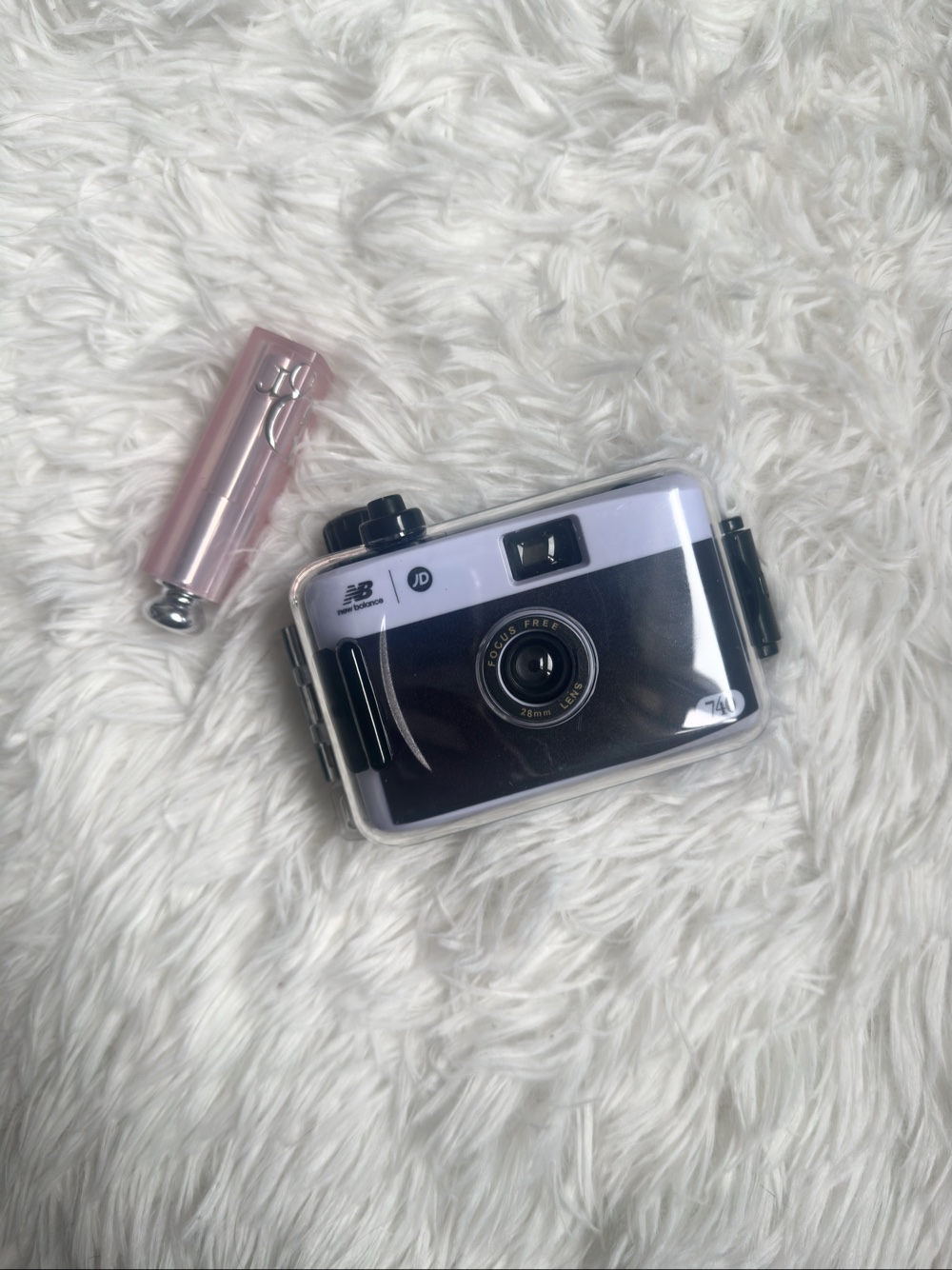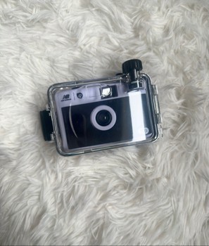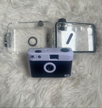 Compact New Balance film camera with a transparent waterproof case. Just to use in place aesthetics.