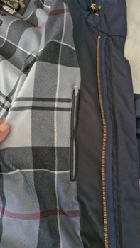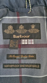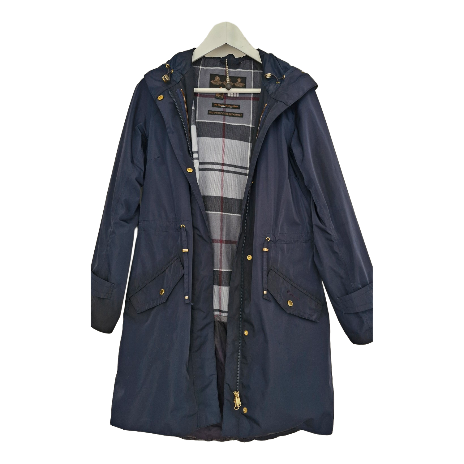 Blue Barbour Aggie parka with removable quilted lining. Waterproof and breathable model. In very good condition thanks to high-quality materials. Slim-ish model, has become a bit small for me. Shoulder-hem at front 90 cm, neck-hem at back 94 cm.