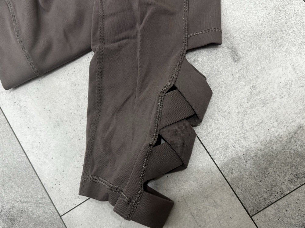 Brown leggings with crisscross cut-out detailing at the ankles.
