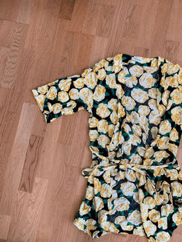 Floral wrap dress / kimono / summer dress / floral dress. It was too small for me, so I recommend it as a dress for size XS and to be worn open as a summer cover-up for larger sizes; works both ways.