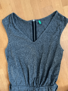 Benetton sleeveless jumpsuit. On the sides two pockets, at the back a short zipper, at the waist an elastic band. Does not squeeze!! Very forgiving for XS size, my hips are now already medium but still fit into this. #jumpsuit