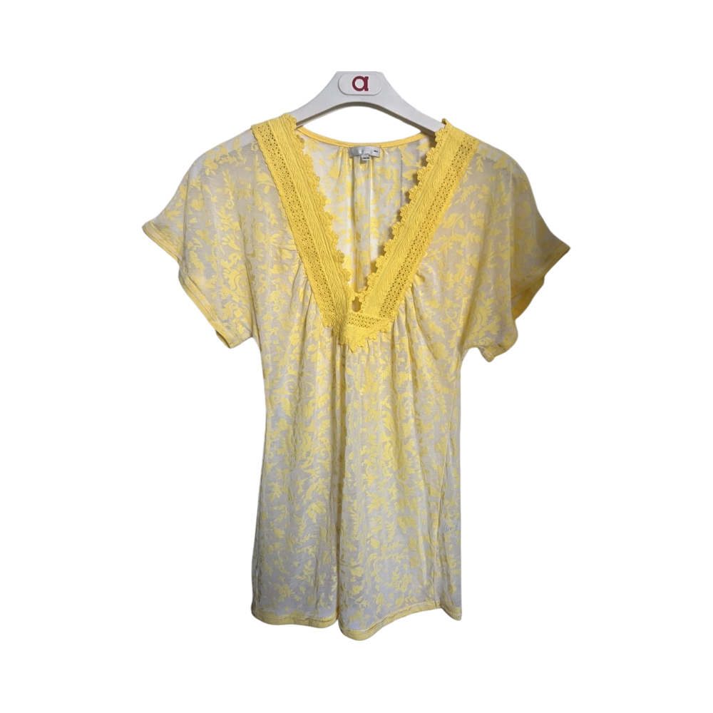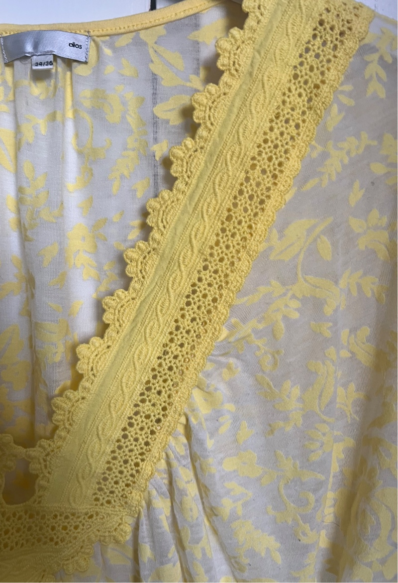 Light yellow-white top with lace details. Additional information available on request. 💛