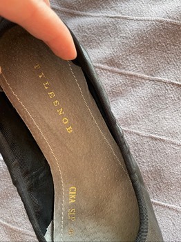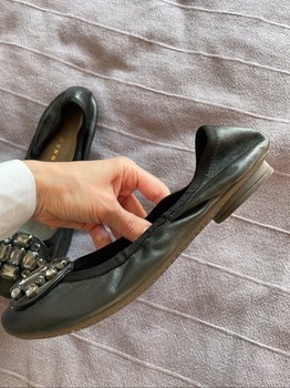 Black leather ballet flats featuring decorative gemstone embellishments on the toe. Size 36, suits for 37 also