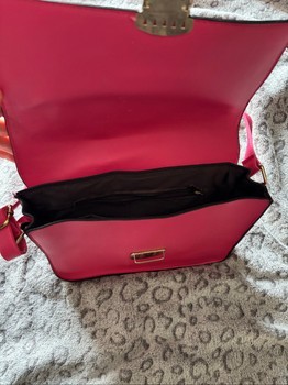 Roosa crossbody kott. Klapi sulgur ja kuldne lukk. Sees on tõmblukuga tasku.