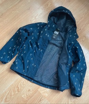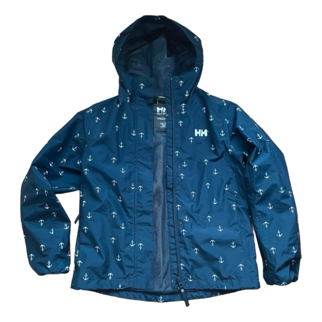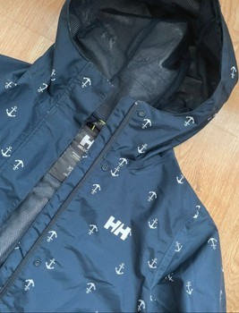 Blue anchor-pattern Helly Hansen jacket. Hooded, mesh lining. Size XS.