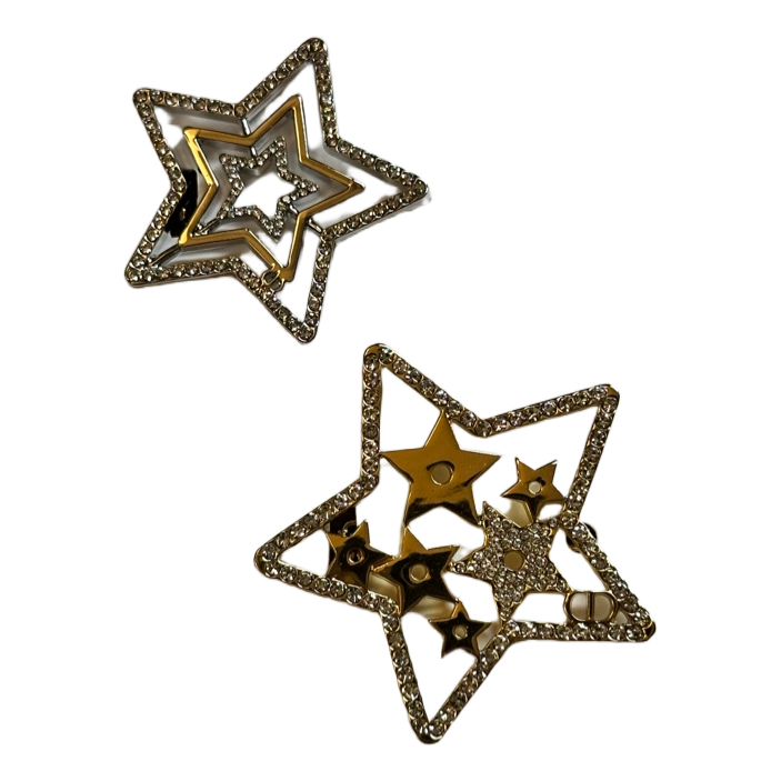 Dior star hair clips from beauty line. The set comes with one silver color small star and one gold color in bigger size. It has crystal stone details around. Very cute and pretty one.