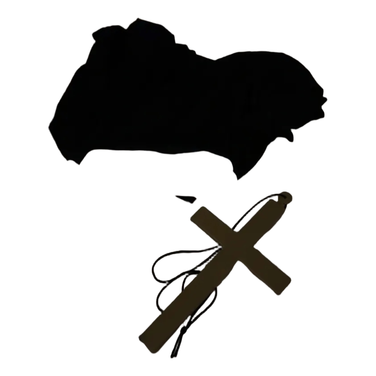 Five-piece nun costume set for women. Includes black garments and a cross necklace accessory.