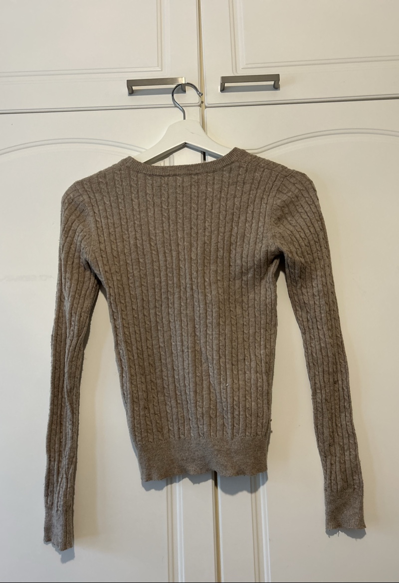 Thin, beige cable-knit sweater, good basic condition.