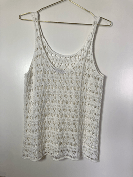 Gina Tricot white lace knit top. Back has a wider neckline than the front. No lining. Stretch knit.